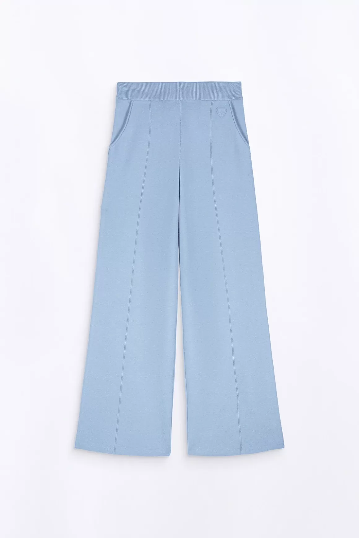 Le Pantalon Taille Haute Ample Annie Est Confectionne En Maille Souple Et Douce. Les Jambes Sont Ornees D’Une Discrete Surpiqure Devant Et Dos. La Taille Elastiquee Est Confortable Grace A Sa Finition En Rib. Les Poches Italiennes Vous Permettent De Garder Vos Essentiels A Portee De Main. Le Patch Signature En Silicone Ton Sur Ton Est Appose Sous La Ceinture.