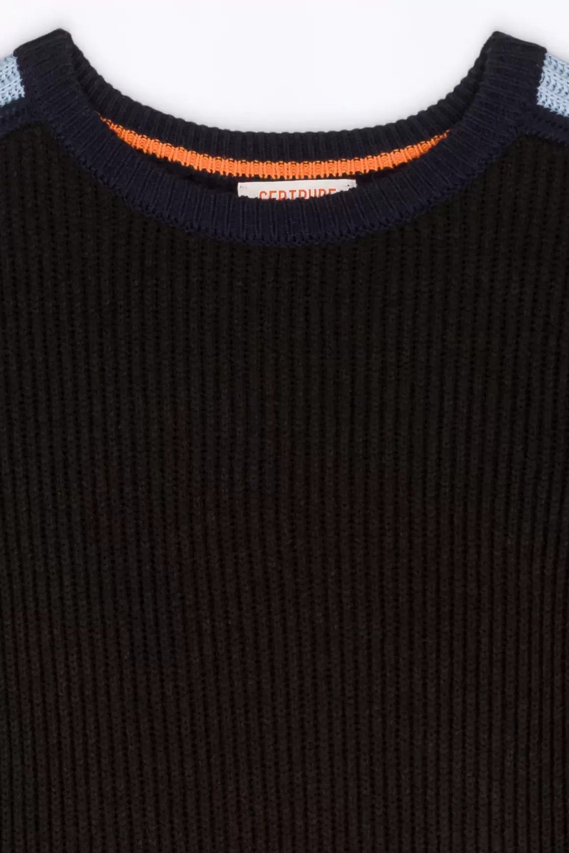 Le Pull Long Ajuste En Cotes Perlees Aglae A Encolure Ronde Est Fendu Sur Le Cote Pour Un Plus Grand Confort. Le Detail Original : Les Manches A Bandes Contrastees Sont Ornees De Bandes Colorees En Points Ottomans Au Niveau Des Poignets. Le Patch En Silicone Ton Sur Ton Iconique De La Marque Est Appose A L’Epaule.