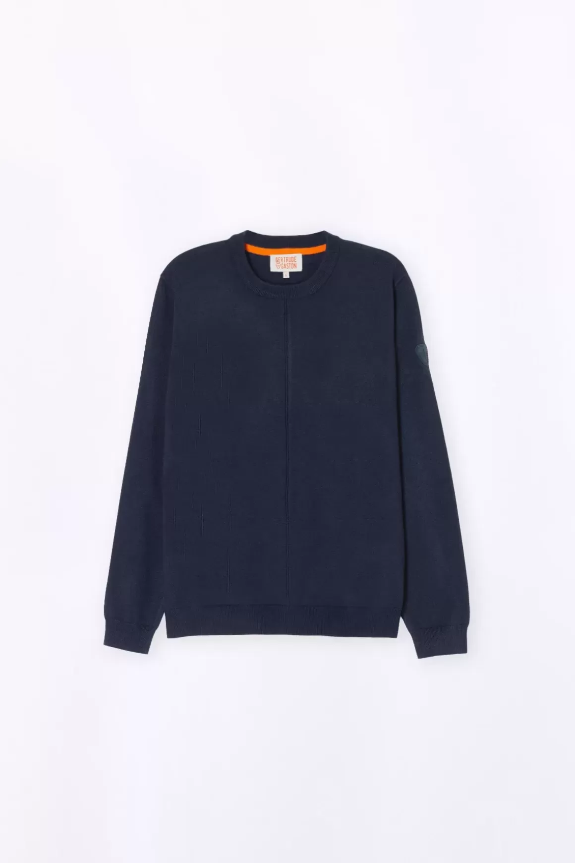 Le Pull Alois A Encolure Ronde Est Confectionne En Maille Legere. Ce Basique Est Disponible Dans Une Large Gamme De Couleurs. Dote D’Une Coupe Droite, De Coutures Centrales Devant Et Dos, Un Rib Resserre Le Bas De Manche Et De Vetement. Retrouvez Le Patch En Silicone Signature Ton Sur Ton A L’Epaule.