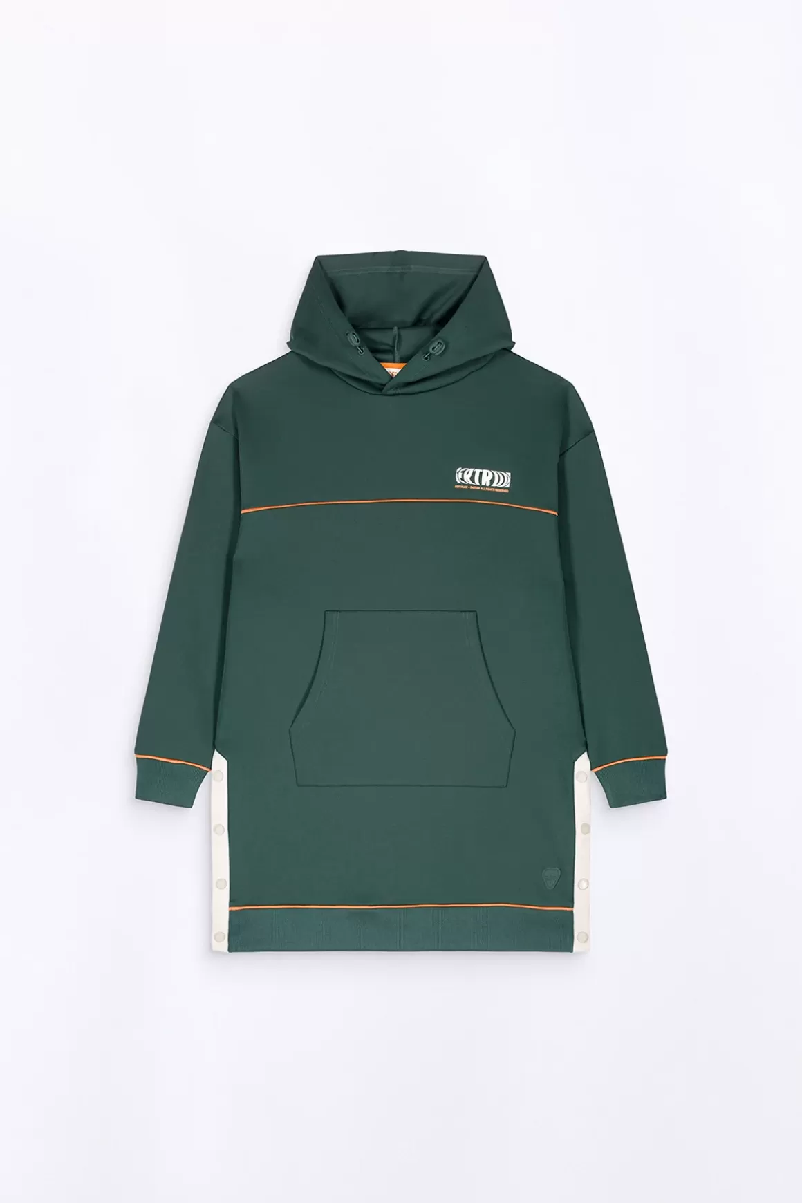 Gloria Est Une Robe-Sweat A Capuche Confectionnee En Acetate. Sa Coupe Sample, Ses Manches Tombantes Resserrees Par Un Rib Et Ses Details De Pressions En Bas De Vetement Sont Inspires De L’Univers Du Sportswear 90’s. La Capuche Est Ajustable Grace A Un Cordon Elastique. Une Poche Kangourou Est Plaquee Sur Le Milieu Devant Pour Le Cote Pratique. Le Logo Est Brode En Coloris Contraste A La Poitrine. Le Patch En Silicone Iconique Ton Sur Ton De La Marque Est Cousu En Bas De Vetement.