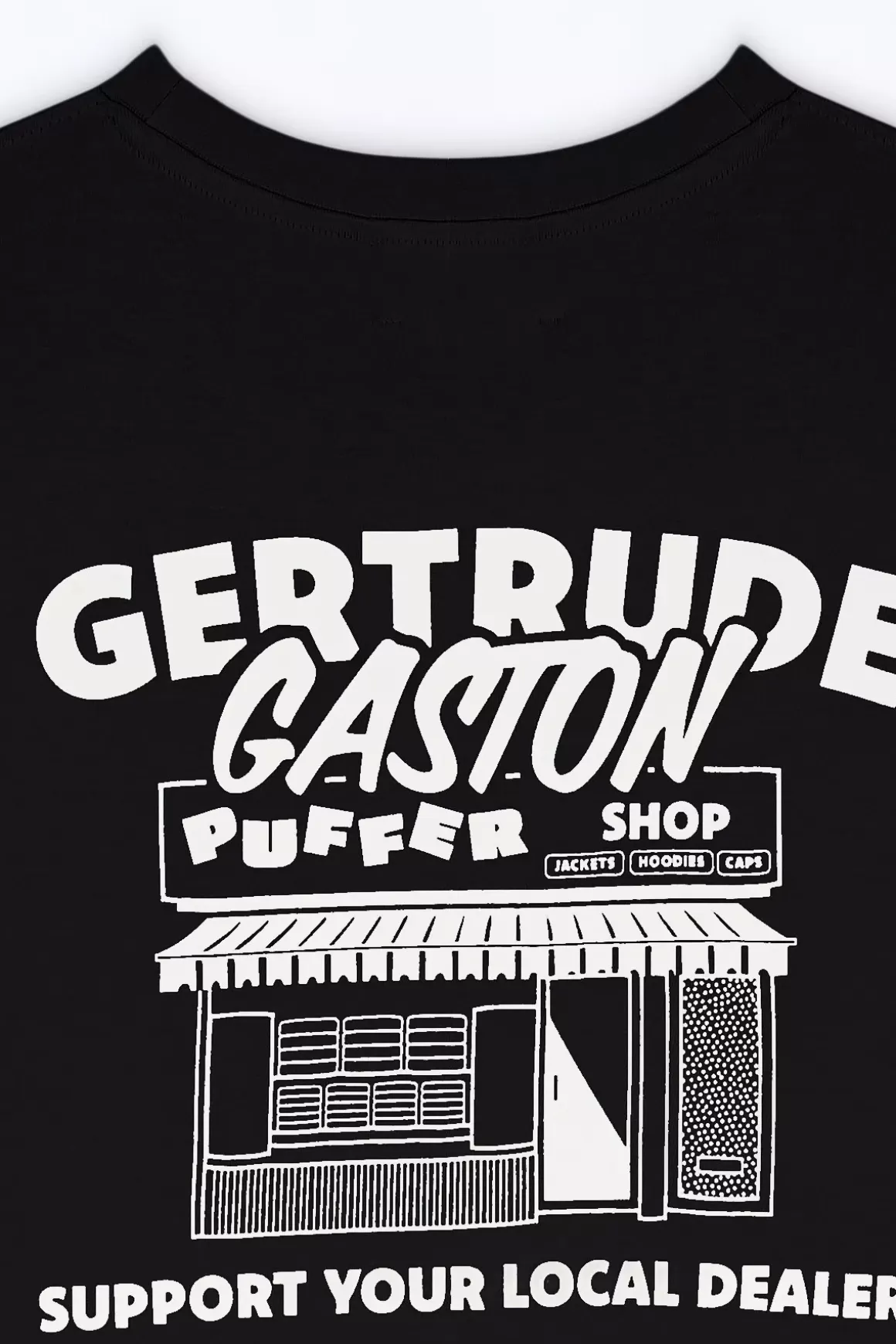 Le T-Shirt Unisexe Leonce Puffer Est Un Basique A Col Rond, Coupe Droite Et Manches Courtes. Un Logo Est Imprime En Ton Sur Ton A La Poitrine. Une Large Impression Contrastee Orne Le Milieu Dos. Le Patch En Silicone Ton Sur Ton Iconique Est Appose En Bas De Vetement.
